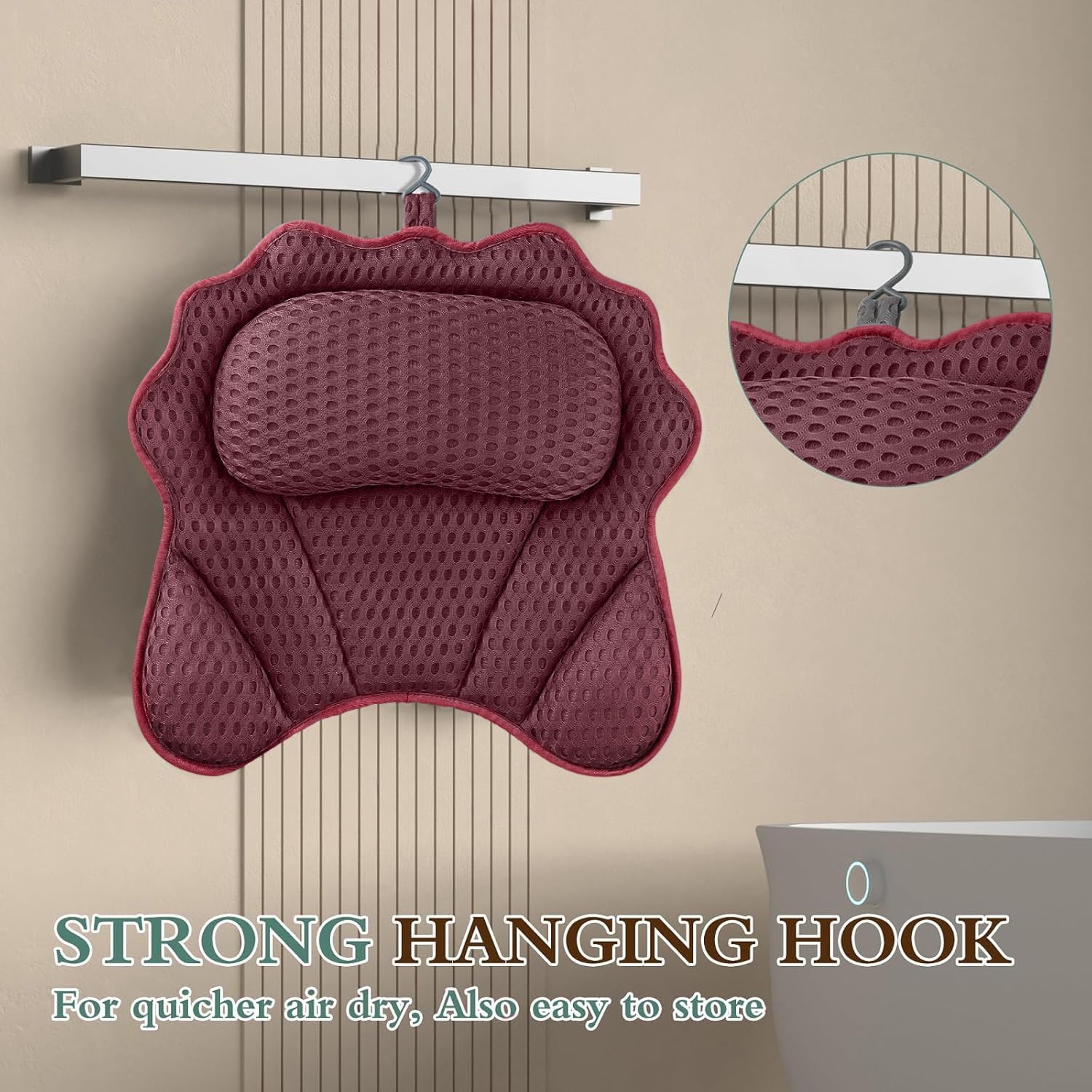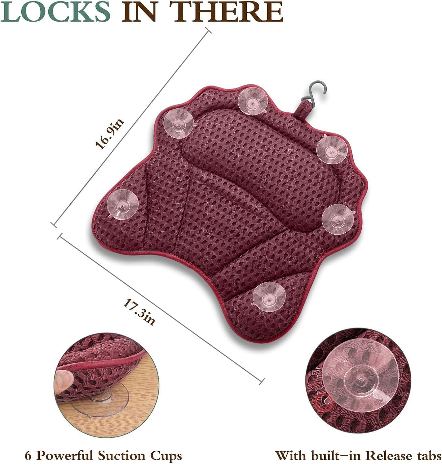 Bath Pillow RUVINCE Ergonomic Luxury Bathtub Pillow with Head,Neck, Shoulder and Back Support, 4D Bath Pillows for tub with 6 Powerful Suction Cups, Fits All Bathtub, Spa Tub, Hot Jacuzzi (Dark red)