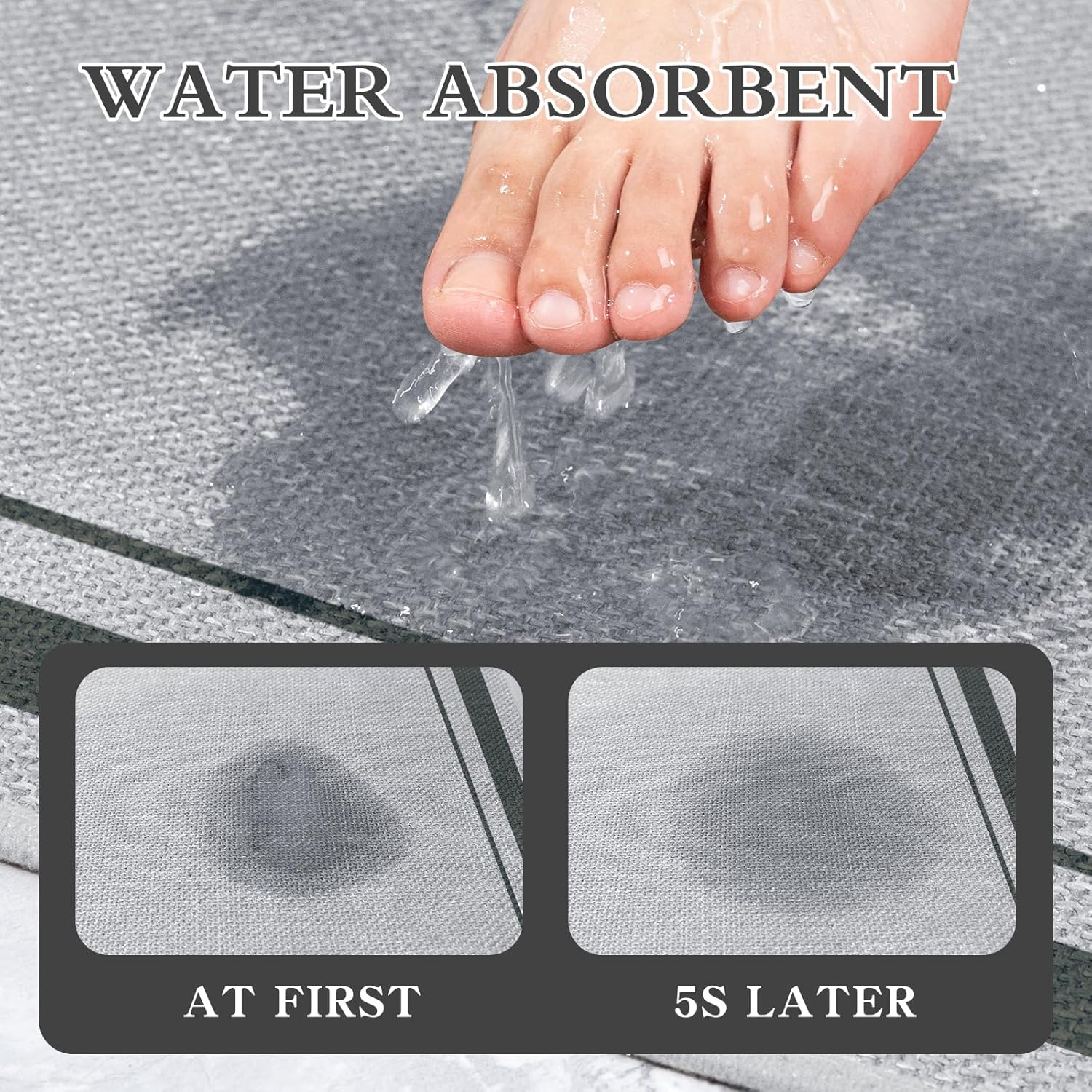 - 【Absorbing & Quick Drying】bathroom mat quick dry made of absorbent fabric that designed to dry quickly, absorbent bath mat can suck up dripping water quickly when you come out from bathtub or shower, and our fabric technique allows the rug to dry fast in the open air, bring you a dry and comfortable bathroom