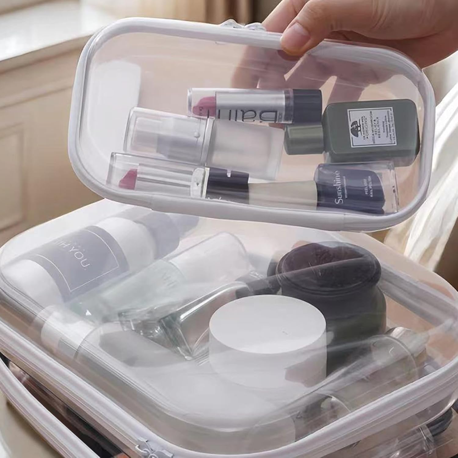 - 【Multi-Purpose Storage Solution】 Perfectly sized for cosmetic bags with zipper (Large: 13.7"x12.2"x2", Medium: 7"x5", Small: 5"x3.5"). Use large cases as extra large makeup cases for palettes, medium for clear toiletry bags (toothbrush/lotions), small as clear pencil cases or jewelry organizers. Works as bags for toys organization in playrooms or makeup organizers in bathrooms.