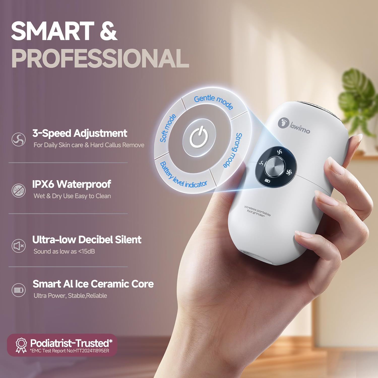 - 【IPX6 Waterproof & Easy to Clean】 The dry skin electric foot callus remover has an IPX6 waterproof design, allowing it to be rinsed under running water. Perfect for both wet and dry environments, Lawimo Callus Remover lets you enjoy a spa-like pedicure at home while saving time and money! A true foot grinder for multitaskers!