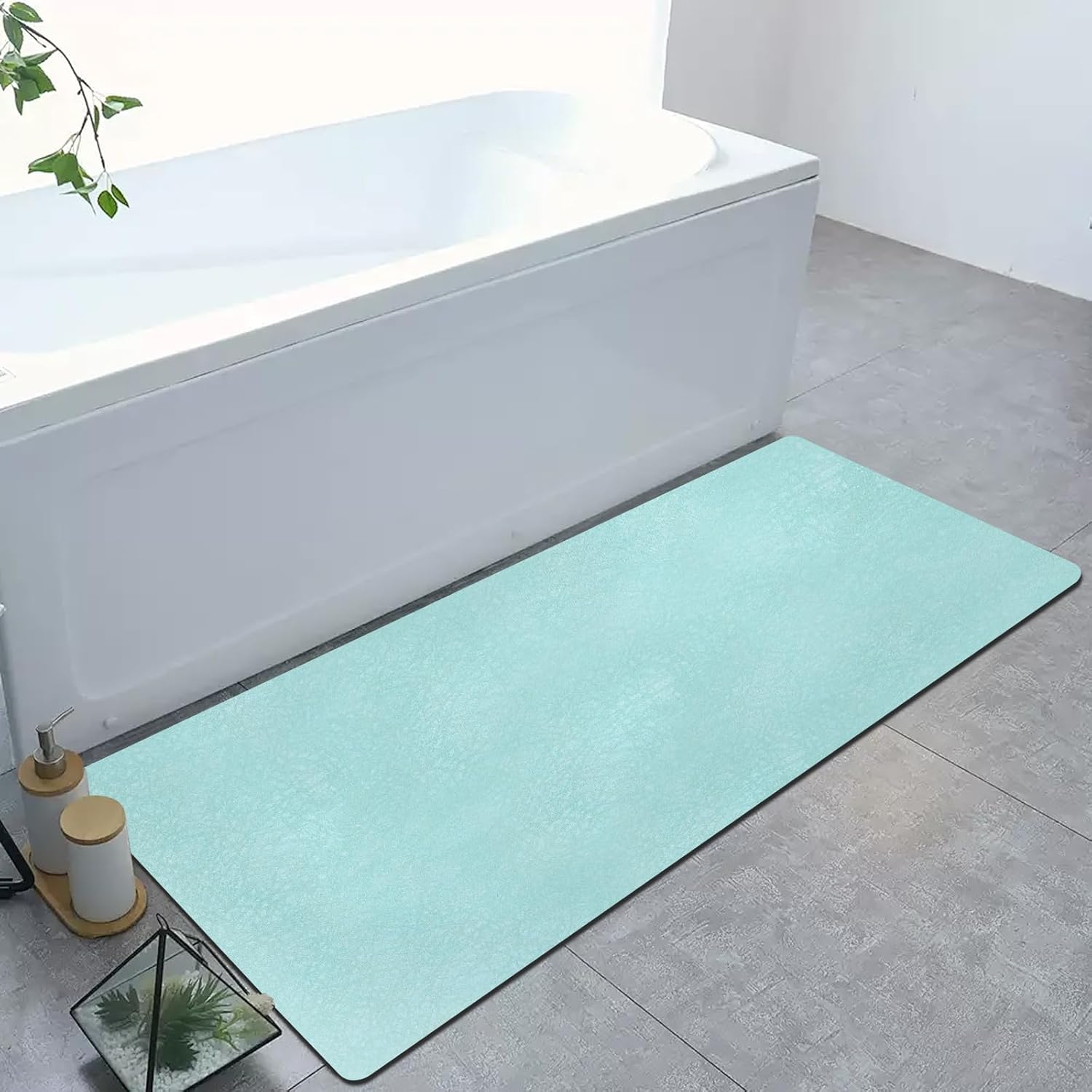 Diatomaceous Earth Bath mat Bathroom Rugs Super Absorbent Quick Dry Non Slip Bath Mat Thin Bathroom Floor Mats Fit Under Door-Shower Rug for in Front of Bathtub Shower, Green, 15.7"*23.6"