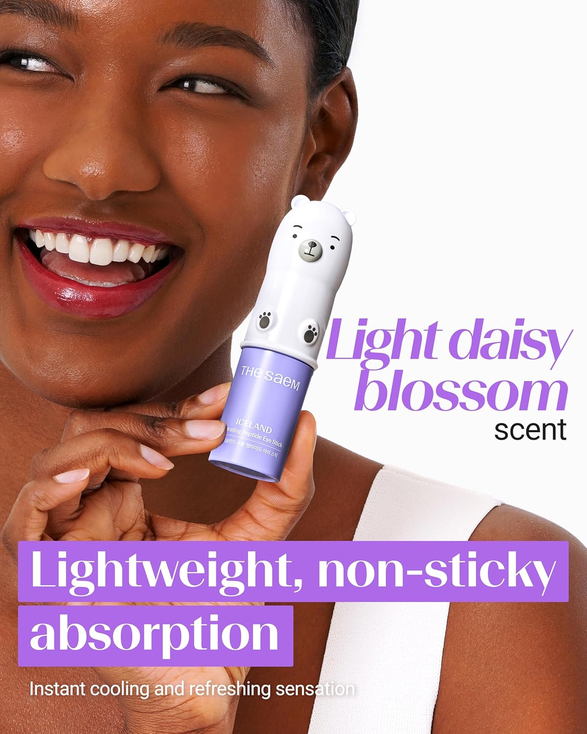 THESAEM Iceland Hydrating Peptide Eye Stick 0.38 oz - Elasticity, Cooling, Moisturizing Eye Balm for Loose Skin – Under Eye Treatment - Balm to Smooth Skin Texture - Daisy Flower Scent
