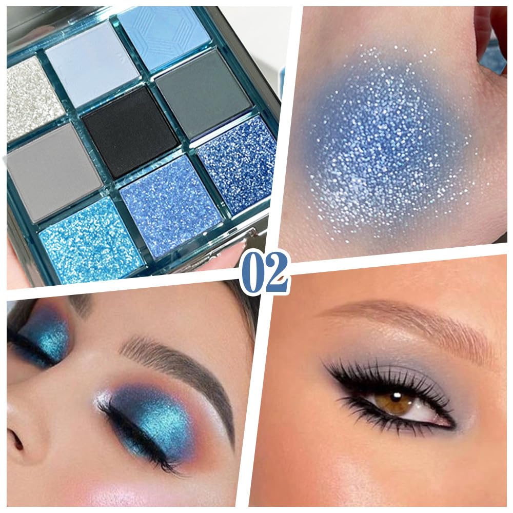 - 1. π¨ 9 Cool-Tone Eyeshadow Colors for Every Look This eyeshadow palette features 9 trendy and wearable shades: White glitter, Light blue matte, Sky blue matte, Silver-gray matte, Black matte, Gray-blue matte, Bright blue glitter, Light blue glitter, and Blue-gray glitter. From soft daytime glam to bold party looks, this is your go-to eye makeup palette.
