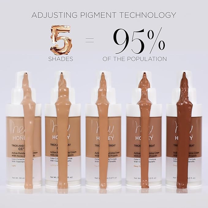 - SELF-ADJUSTING TRIPLE PIGMENT TECHNOLOGY: Powered by innovative self-adjusting triple pigment technology, Hey Honey CC Cream adapts seamlessly to your unique skin tone. With just five versatile shades, this revolutionary formula matches 95% of the population, ensuring a perfect match for almost everyone.