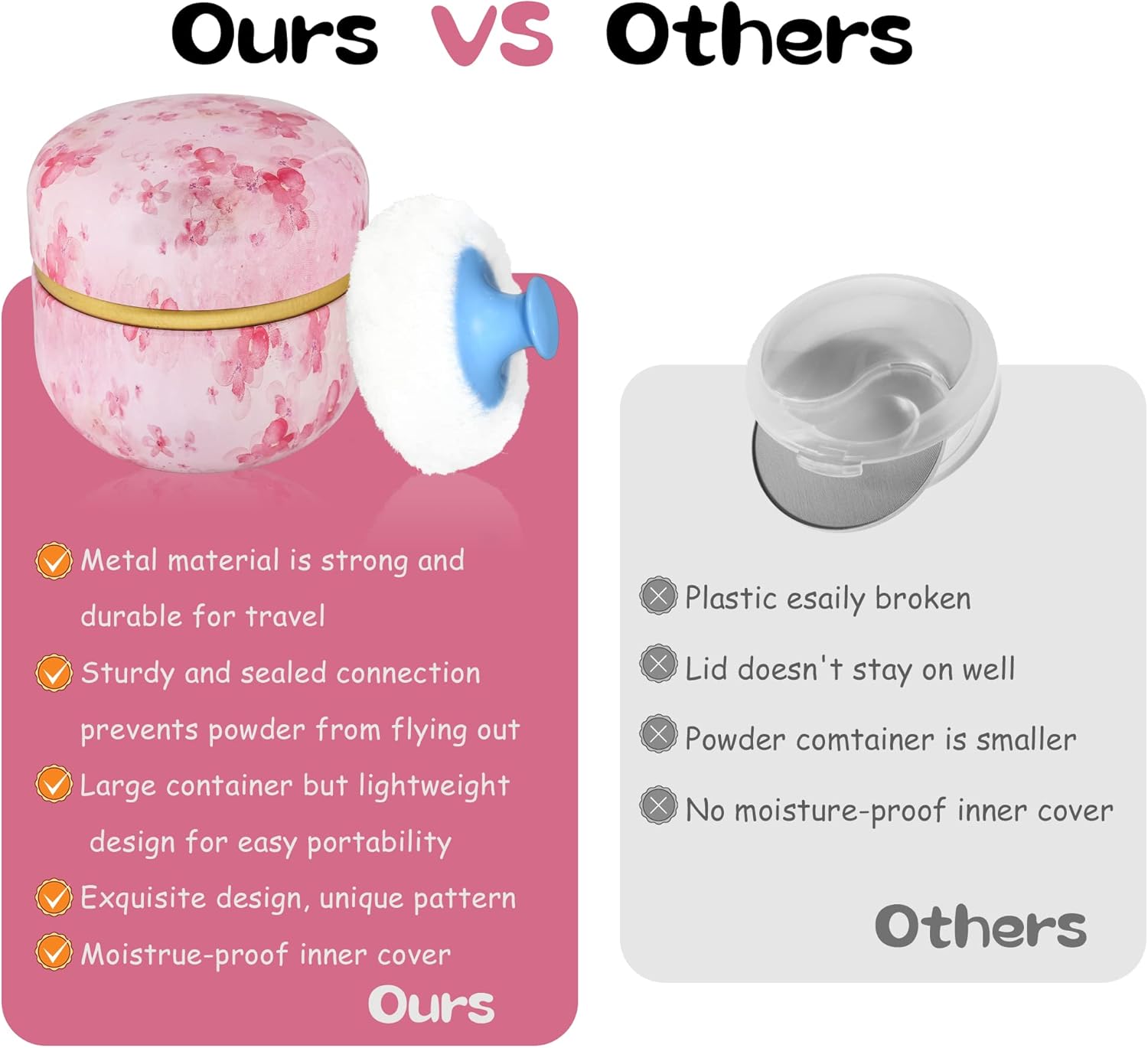 - The powder box has a delicate appearance and a variety of patterns for you to choose. The powder box is made of high-quality tinplate, which are not easy to break after being dropped, and not fade easily, and can be used for a long time. There is also a lid inside the powder box, so you don't have to worry about spilling powder.