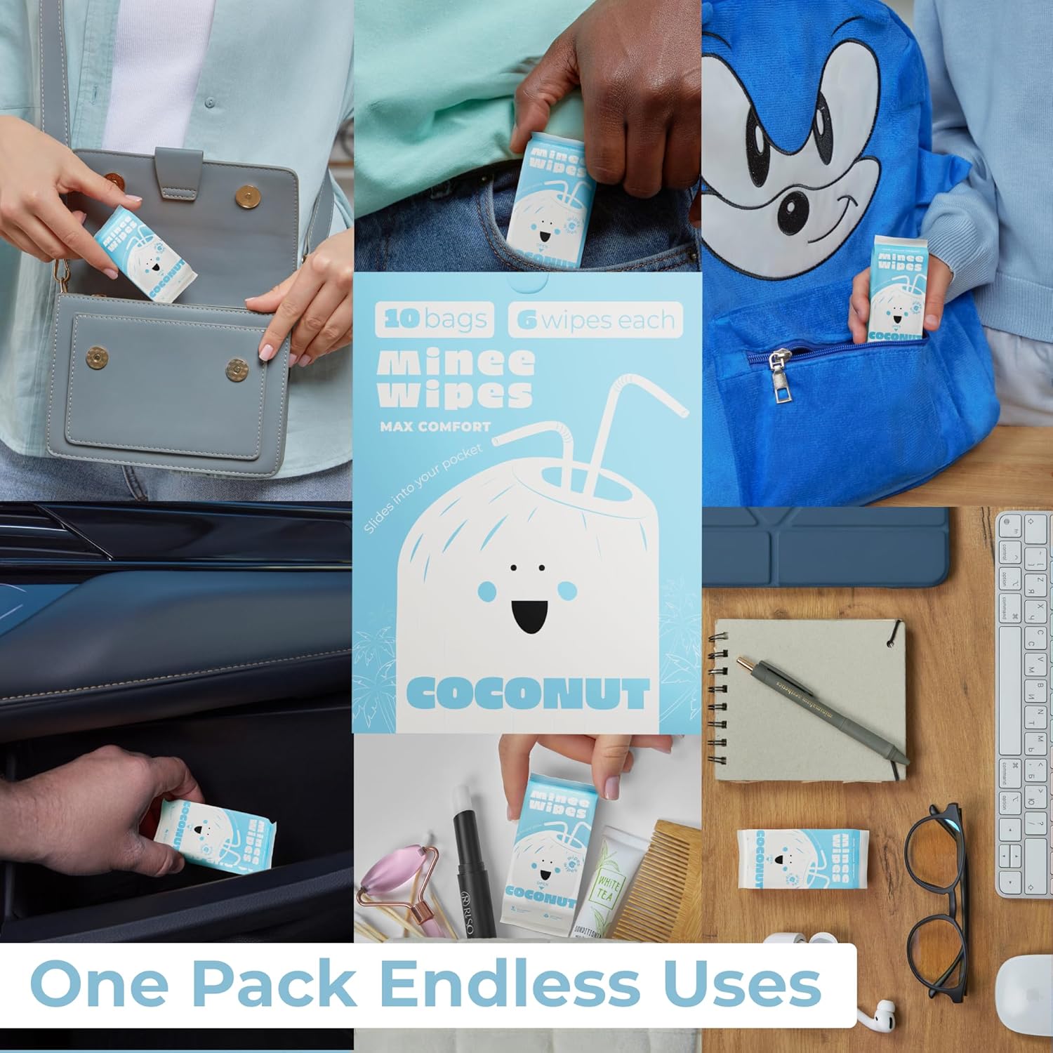- đź’™SLIDES INTO YOUR POCKET: Our mini coconut wipes offer the ultimate in portability with their compact design. These refreshing scented wipes fit effortlessly into your pocket, making them the ideal choice for those seeking convenient, on-the-go hygiene solutions. Perfect coconut hand wipes for any occasion. More convenient to use than individual wipes and hand wipes individually wrapped.