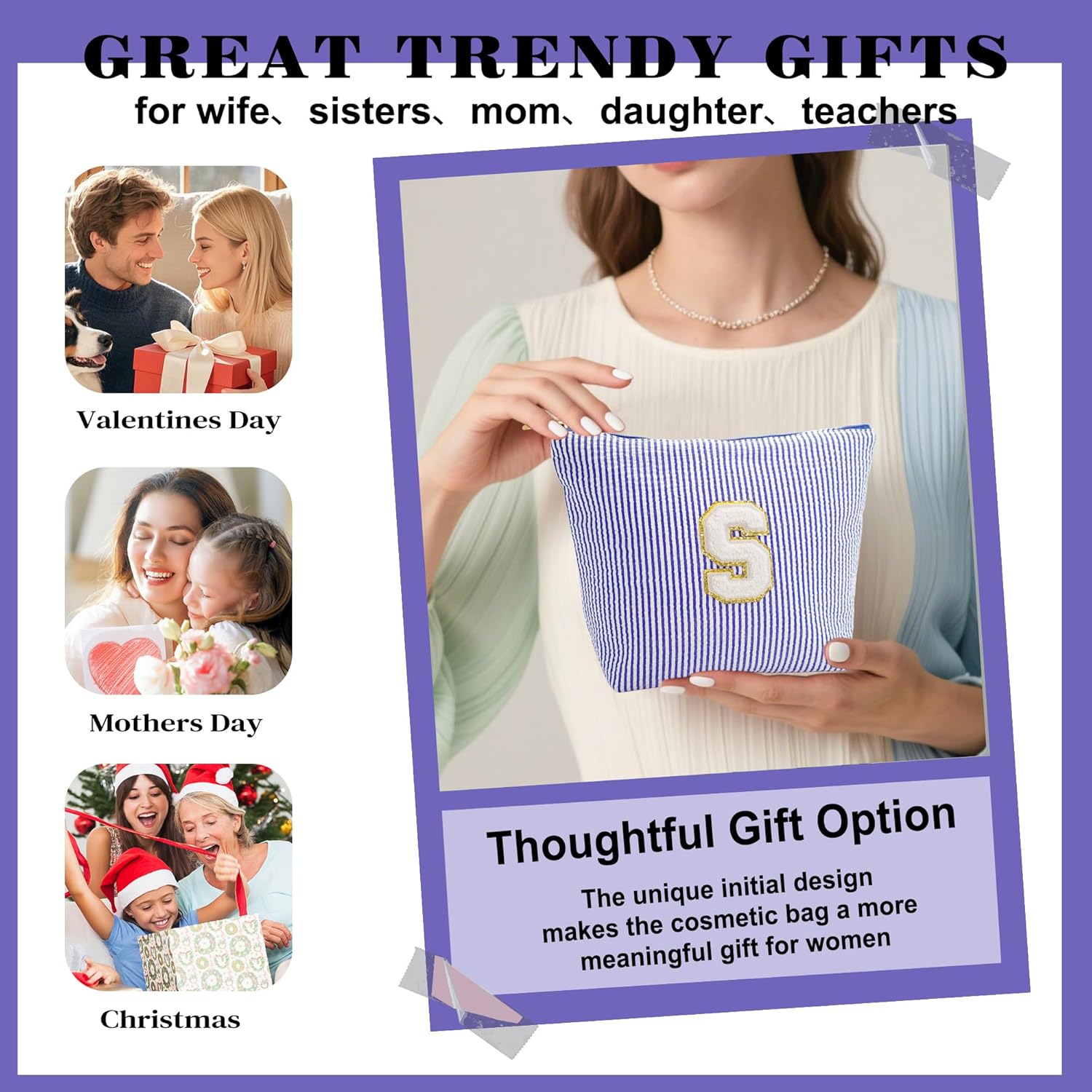 - PERSONALIZED GIFTS FOR WOMEN: The unique initial design makes this cosmetic bag a thoughtful gift for women, the personalized initials on this adorable cosmetic bag make it great for daughters, mothers, wives, friends, teachers...