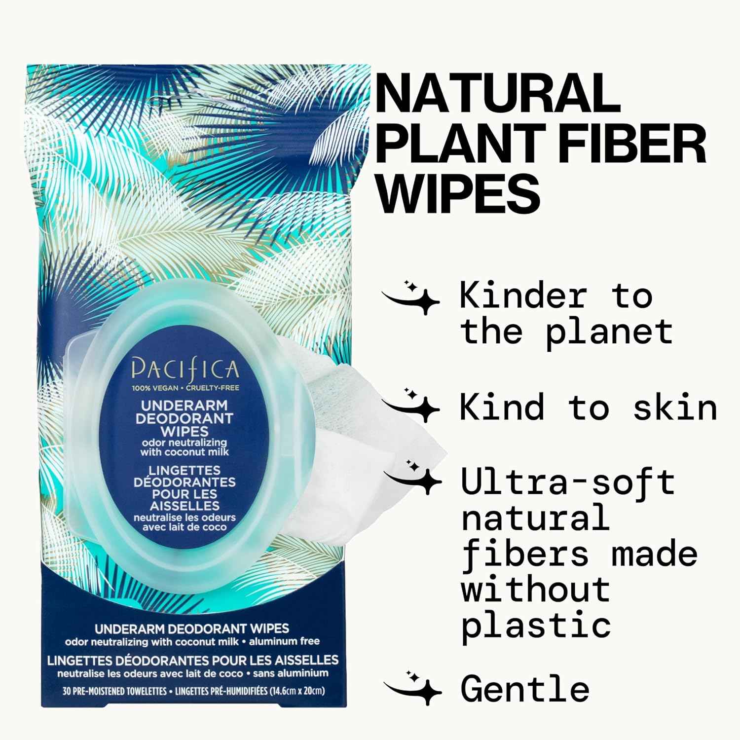 - COCONUT MILK DEODORANT WIPES – Keep fresh on-the-go with these aluminum-free deodorant wipes. Infused with coconut milk and essential oils, Pacifica’s Underarm Deodorant Wipes neutralize odors and wipe away sweat anytime, anywhere. The 100% cotton wipes are soft and gentle on skin, perfect for post-workout, travel, or a quick refresh between showers. Enjoy a light natural coconut scent as these wipes leave you feeling clean and confident without any sticky residue or overpowering perfume.
