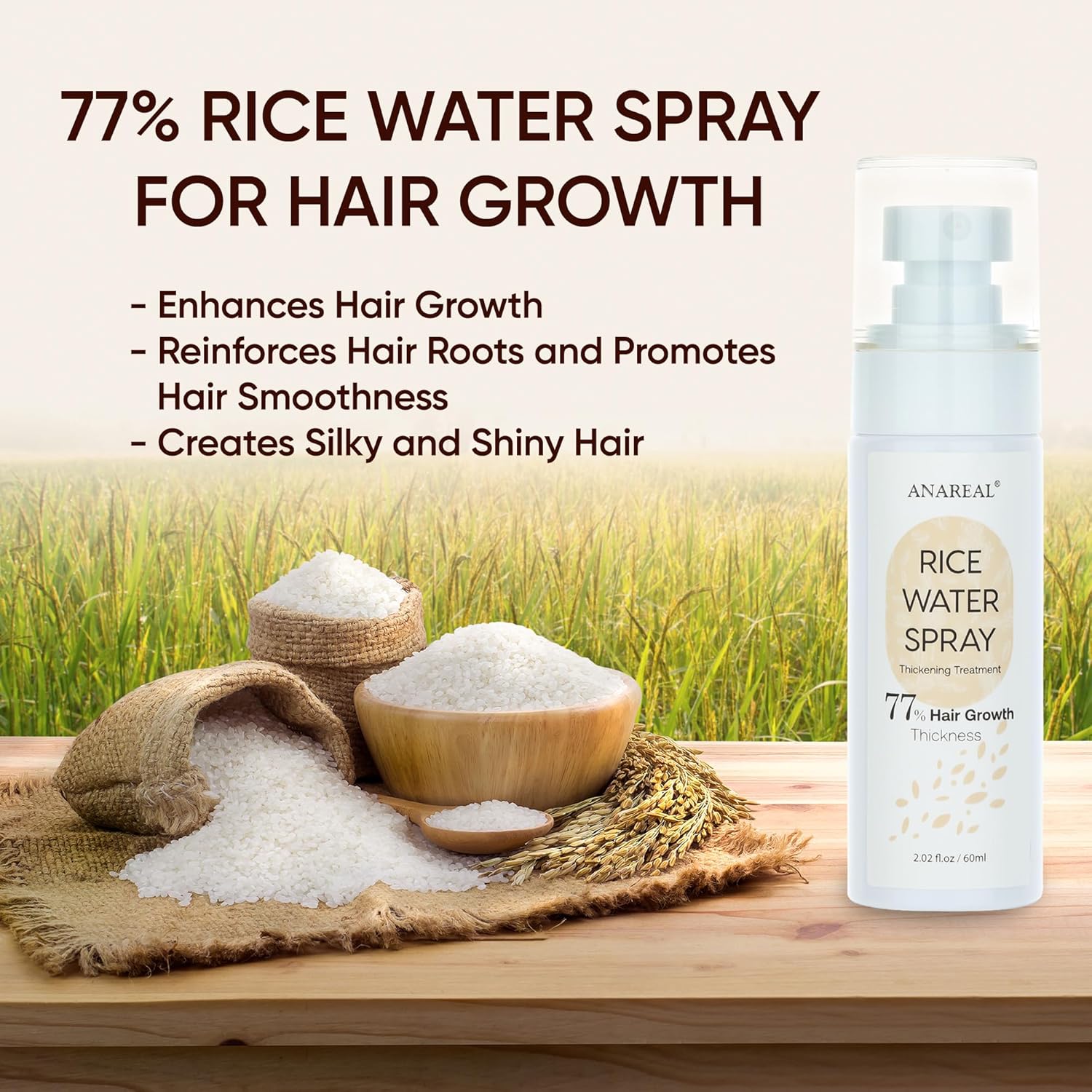 - * Minimizes Hair Loss and Thinning: Our rice water hair spray stands out as an excellent solution among hair loss treatments for women. It efficiently lessens hair loss and thinning by nourishing hair roots and revitalizing hair follicles.