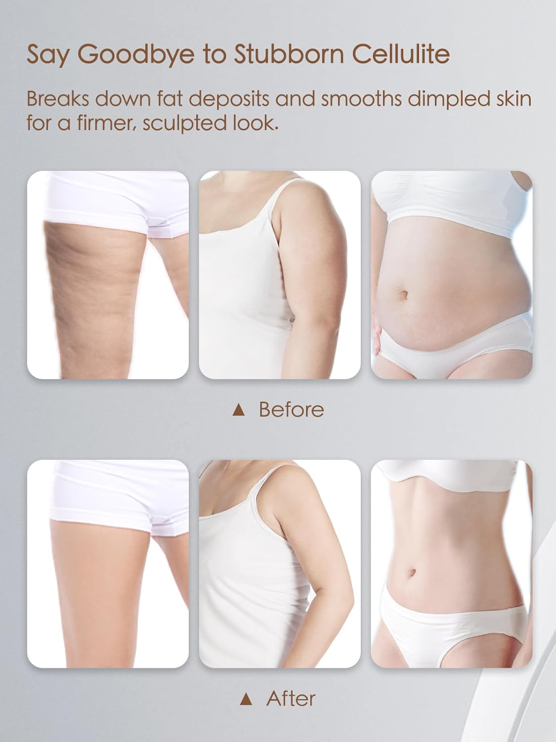 - Anti-Cellulite Technology – Smooth & Tighten Your Skin: This cellulite massager combines light, heat, vibration, and SoothingPulse to target stubborn cellulite & stretch marks. It boosts circulation, enhances collagen production, and improves skin elasticity, leaving you with firmer, more toned, and smoother skin. Ideal for legs, arms, stomach, thighs & waist.