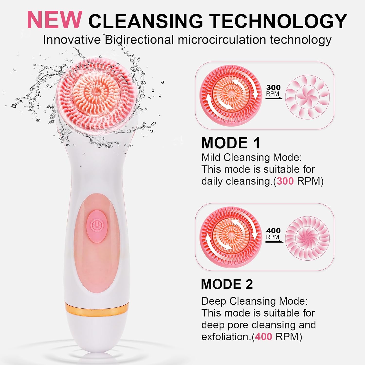 Facial Cleansing Brush, 3 in 1 Electric Face Scrubber with 3 Brush Heads for Women/Men, Waterproof Rechargeable Face Cleansing Brush for Dry Oily Sensitive Skin (Pink)