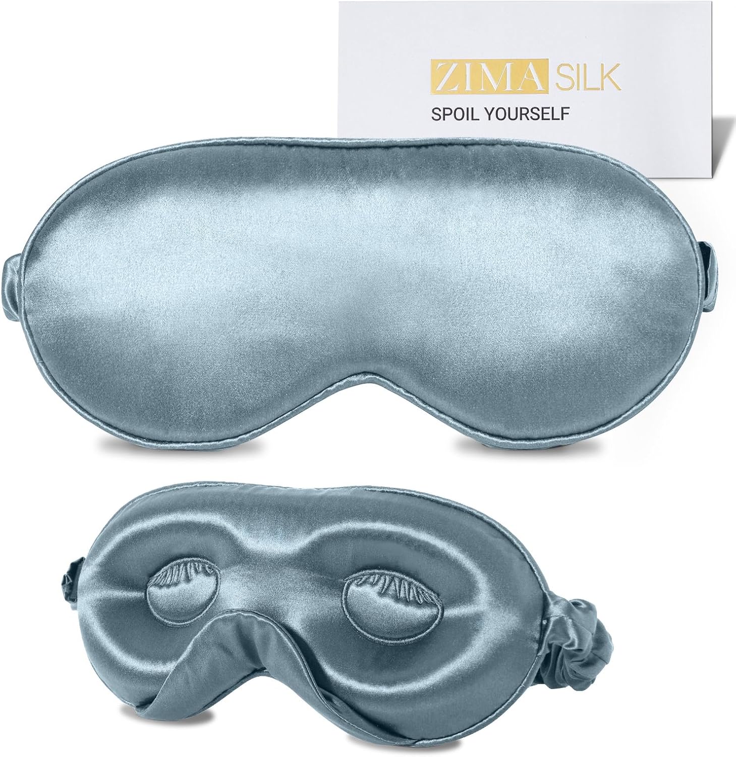 ZIMASILK Adjustable 22 Momme 100% Mulberry Silk Sleep Mask, Upgraded 3D Contoured Cup Eye Mask for Sleeping, Super Soft & Breathable Blindfold, Blackout for Deep Sleeping (Blue Haze)