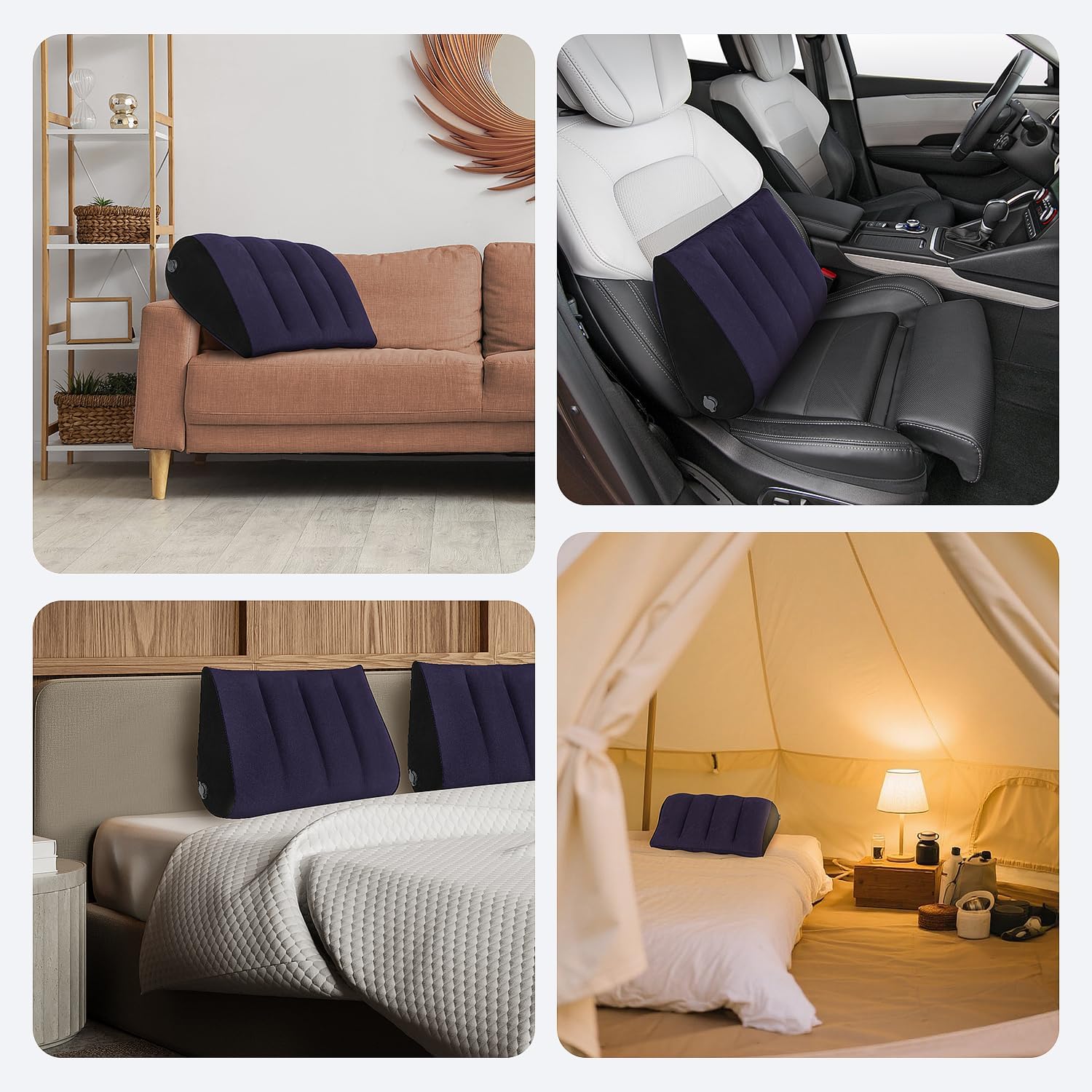 - Bed wedge: The inflatable wedge seat can be used as a leg pillow. Can be used as a lumbar pillow when sitting on bed. Can also be used as knee support or foot support. Helps reduce muscle and joint pain, increase blood circulation and help reduce nervous stress, leaving you completely comfortable and relaxed for a healthier mind and body.