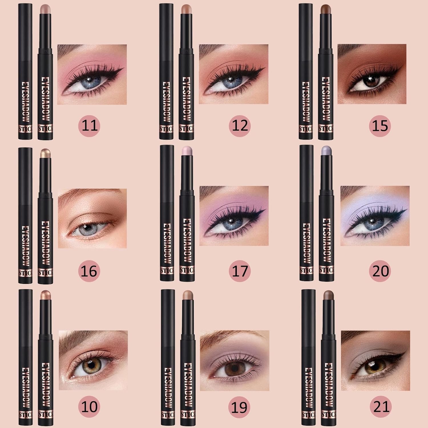 - Our eyeshadow sticks allows to create a highly three-dimensional eye effect, making the eyes look deeper and more lively.
