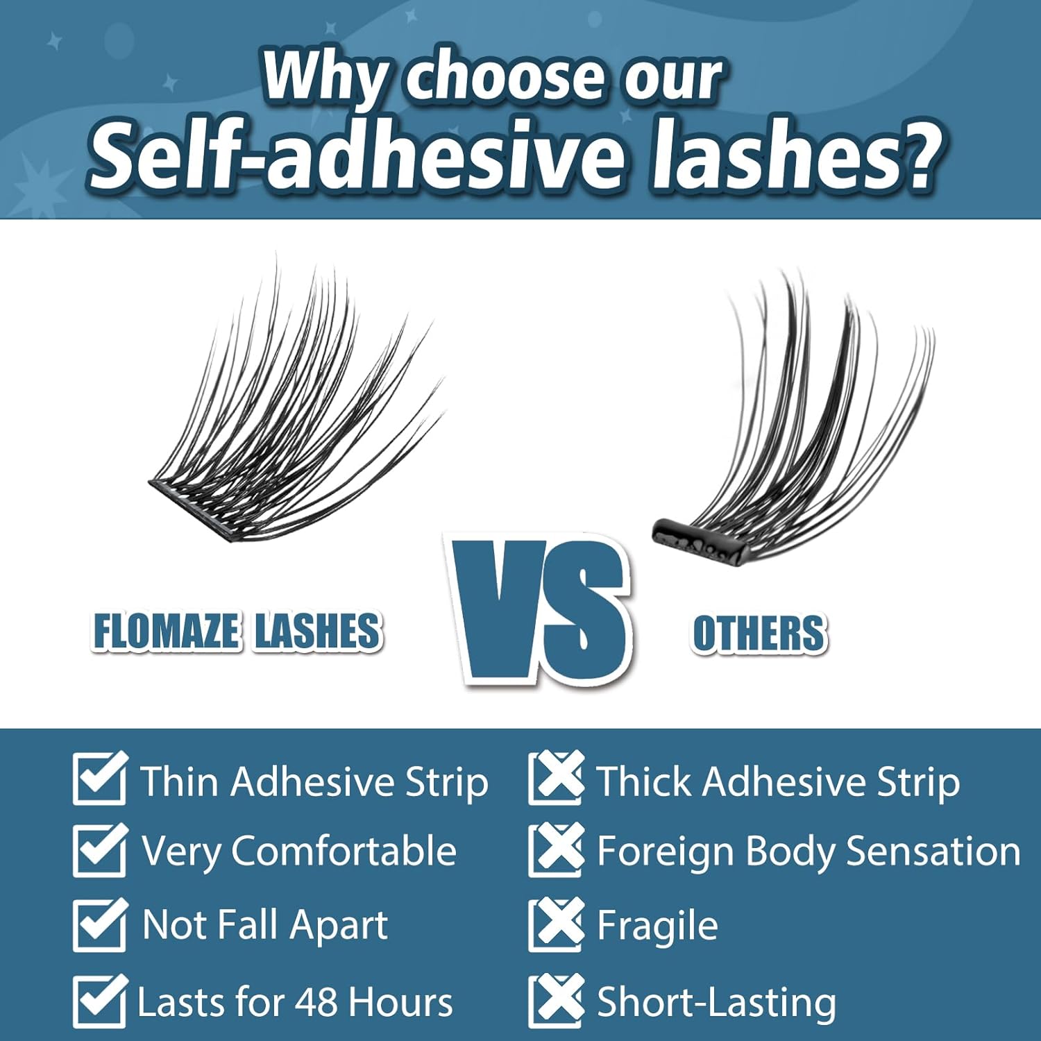 - [Comfortable and Long-Lasting] The newly upgraded self-adhesive eyelashes break through technical limitations. Not only does the tape become thinner without a foreign body feeling.