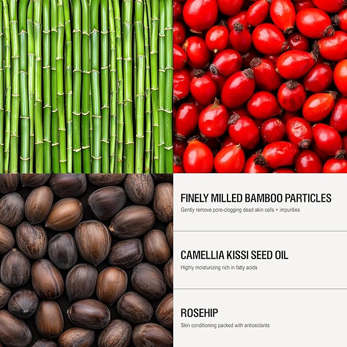 - Polishing Facial Exfoliator. Gentle enough for daily use helps to remove dry, dead skin, revealing a softer, smoother complexion. Formulated with natural Bamboo exfoliant, Aloe, Vitamin C, Pink Grapefruit, Glucomannan extract, Vitamin E, Glycerin & Camellia Kissi Seed oil. Skin texture feels smooth and soft