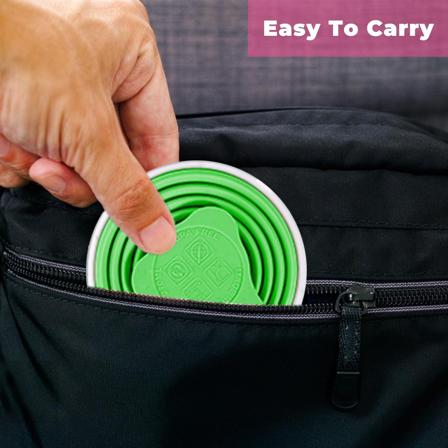 - Silicone Foldable Cup:Made of 100% food-grade silicone, BPA free, stainless steel cup ring and plastic cup lid. Easy to clean and reusable