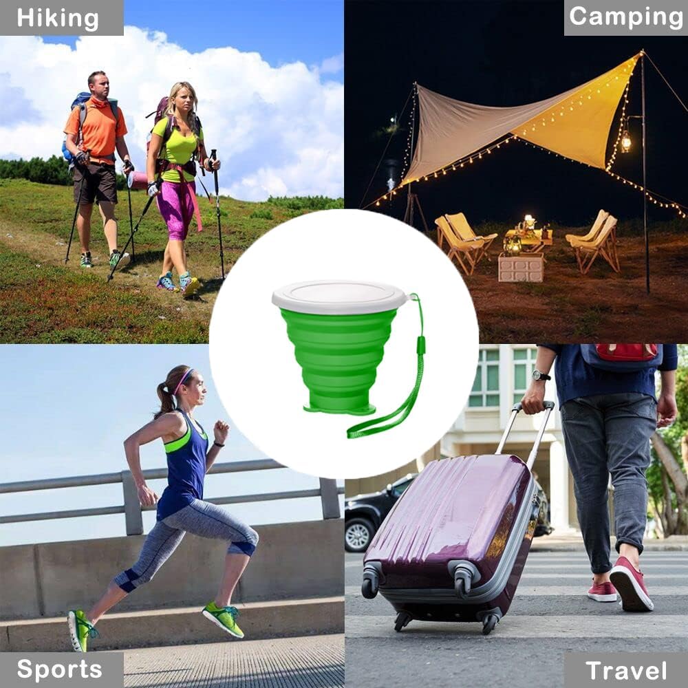 Silicone Collapsible Cup,Collapsible Cups for Camping,Folding Cup with Lids,Collapsible Coffee Cup,Reusable Drinking Mugs Cup(Green)