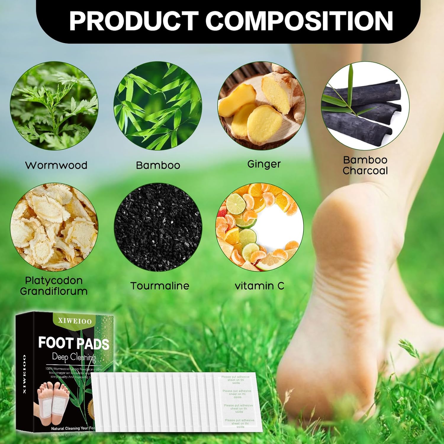 - đź’•Our foot pads feature a blend of high-quality ginger powder, bamboo vinegar, and wormwood, XIWEIOO 50 Pack Natural Foot Pads