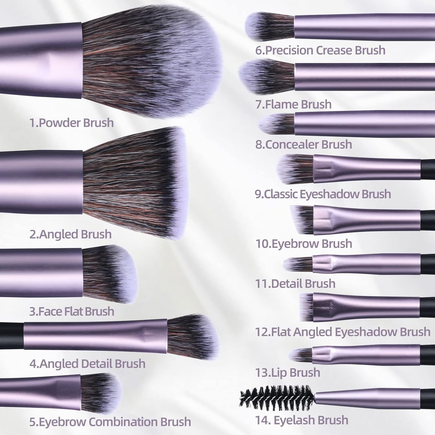 BS-MALL 14 Pcs Makeup Brushes Set with 1 Pcs Makeup Sponge – Essential Foundation Powder Concealers, Eye Shadows, Blush Makeup Brushes with Travel Makeup Case (Purple)