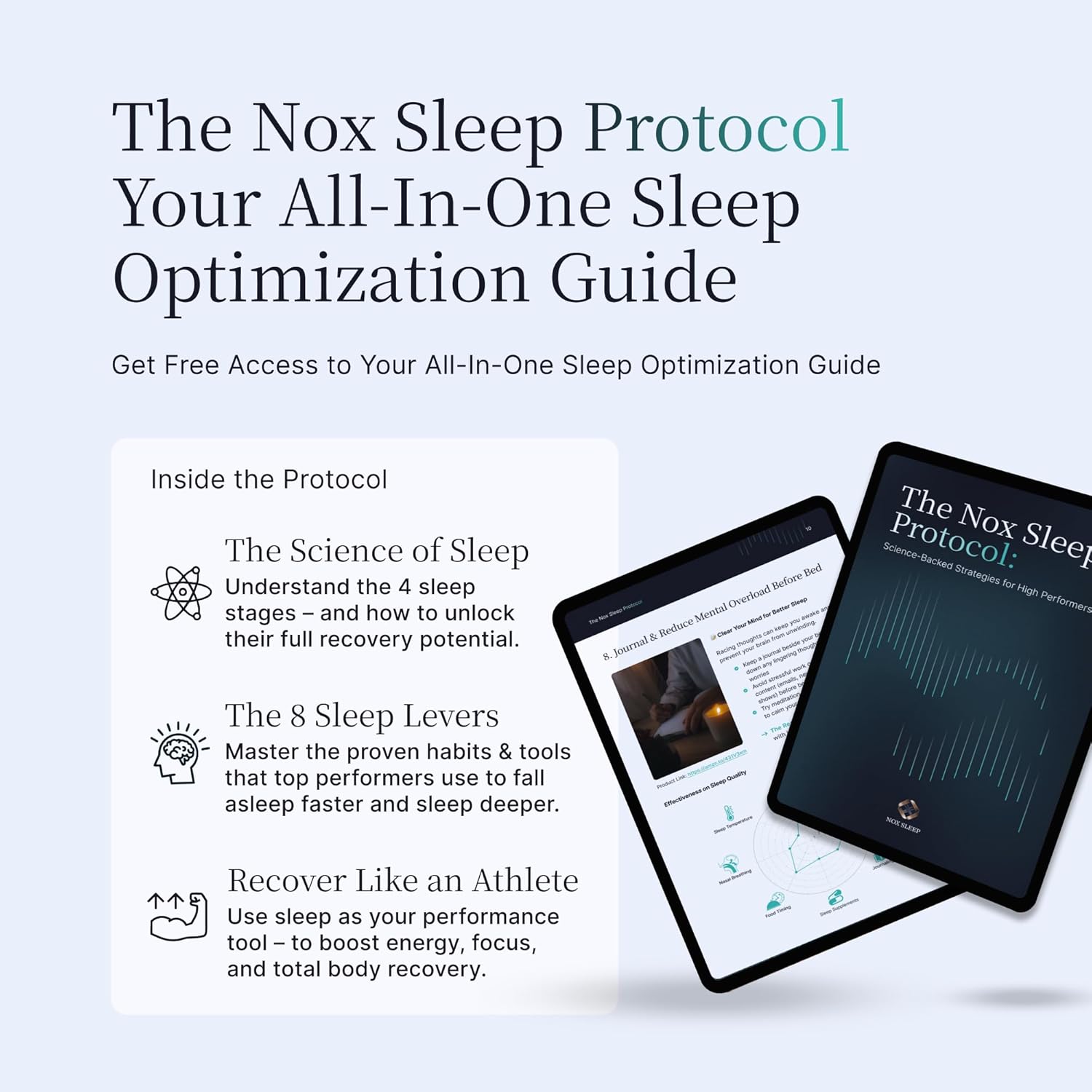 - ๐๐ฅ๐ญ๐ข๐ฆ๐๐ญ๐ ๐๐ฅ๐๐๐ฉ ๐๐ฉ๐ญ๐ข๐ฆ๐ข๐ณ๐๐ญ๐ข๐จ๐ง โ Includes the Nox Sleep Protocol with science-backed tips. Achieve better sleep, a sharper mind, and peak performance!