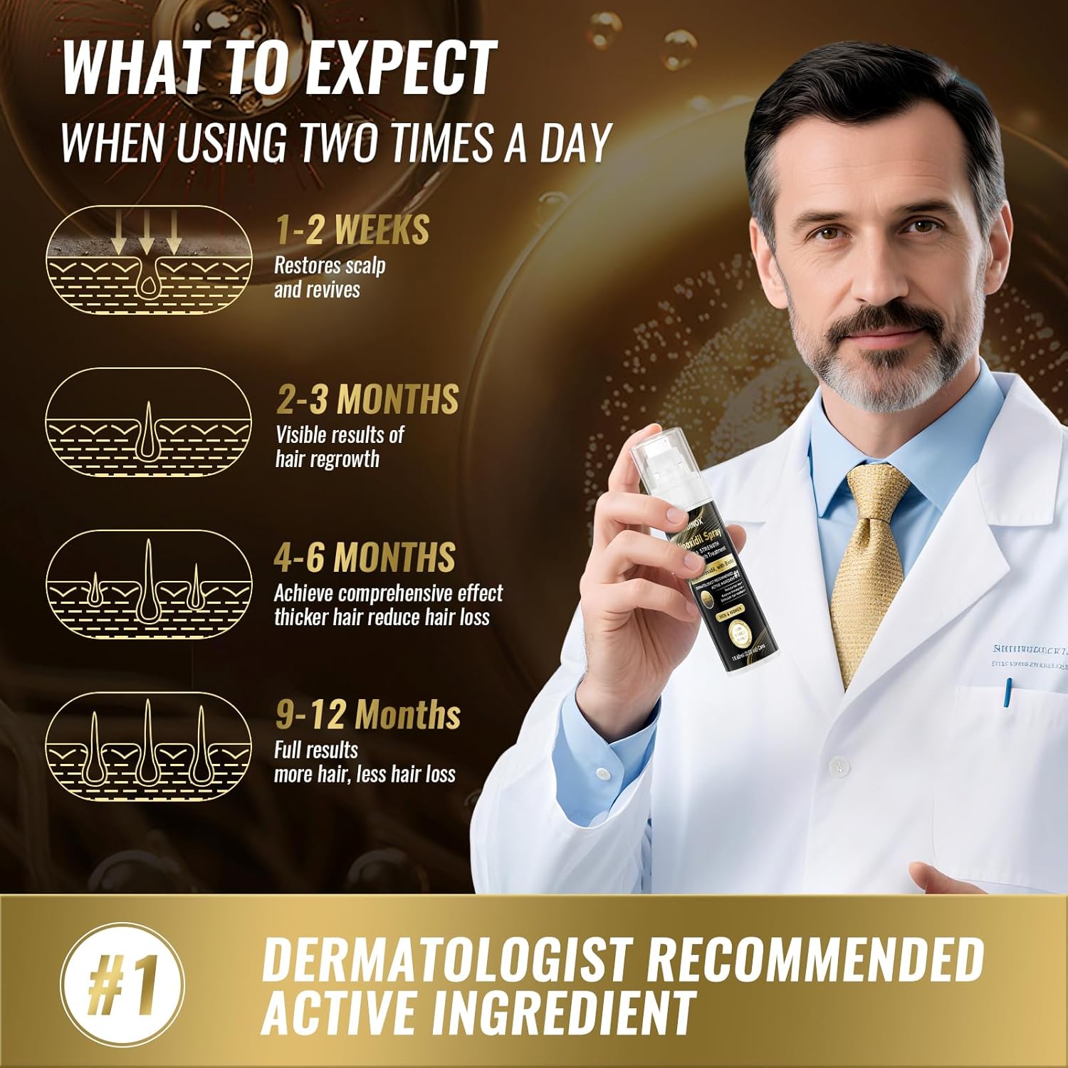 - 【Visible Results in 8-10 Weeks】: This minoxidil spray reactivates dormant hair follicles while biotin delivers essential nutrients for thicker, fuller hair. Suitable for both men and women, noticeable regrowth results become visible with consistent use over 2-3 months.