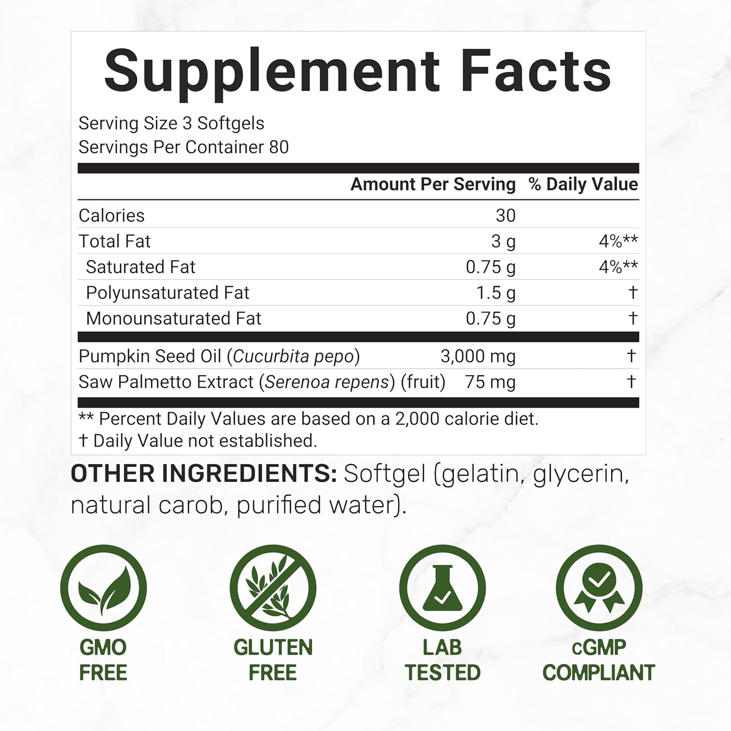 - Dosage & Servings – 240 softgels per bottle, with 3 softgels per serving delivering 3,000mg of pumpkin seed oil plus 75mg of saw palmetto extract for targeted daily support.