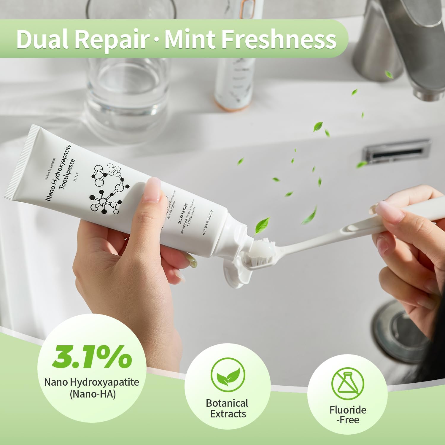 - Mimics Natural Tooth Enamel for Enamel Repair:Formulated with Nano-Hydroxyapatite (n-HA), a mineral that naturally makes up 97% of tooth enamel, our fluoride-free toothpaste helps remineralize and strengthen enamel while protecting against sensitivity. Dentist recommended for daily use.