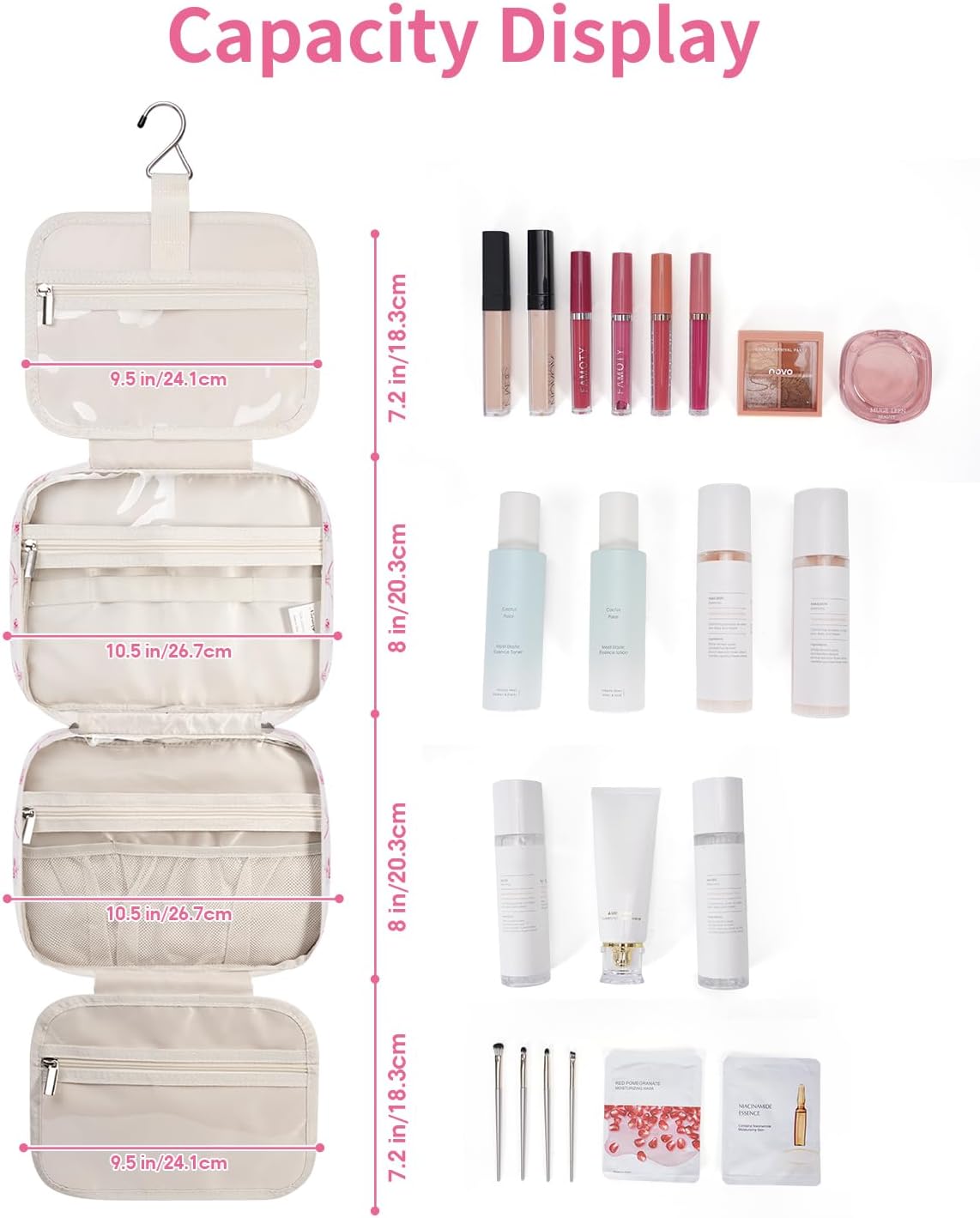 Narwey Hanging Toiletry Bag for Women Travel Makeup Bag Organizer Toiletries Bag for Travel Size Essentials Accessories Cosmetics (Bowknot and Flower (Medium))