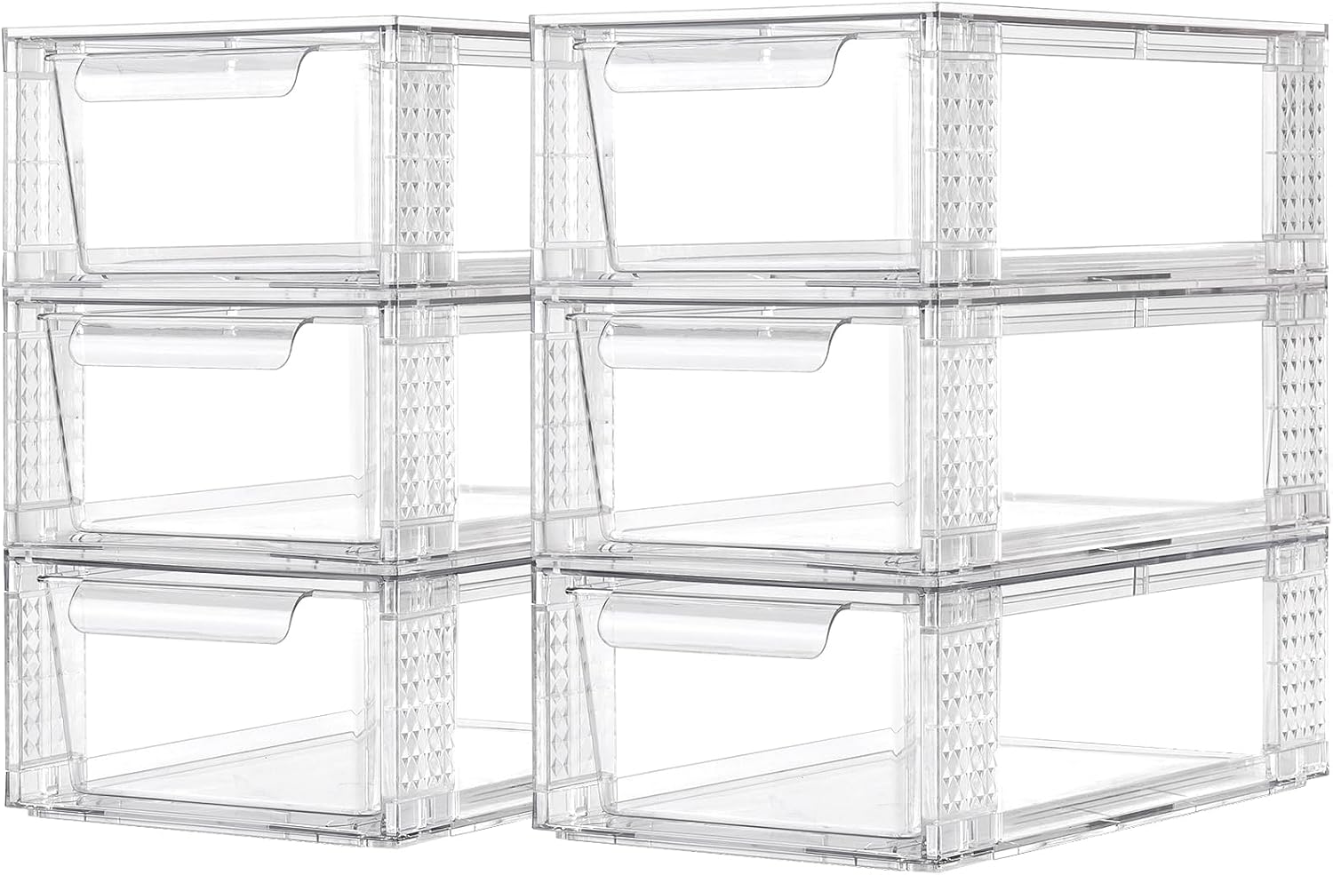 6 Pack Clear Stackable Storage Drawers, 3.95" H Easily Assemble Acrylic Organizer Bins - Multi-Use for Make up, Closet, Pantry, Bathroom, Medicine, Kitchen Cabinet & Undersink Organization