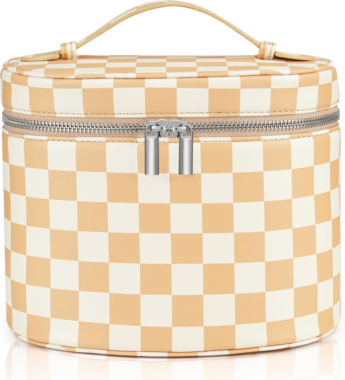 - Large Capacity: This makeup bag measures 8×6×6.5 inches, offering ample space for cosmetics, toiletries, and skincare. Its portable size makes it ideal for travel, while still holding full-size bottles, brushes, and daily essentials with ease.