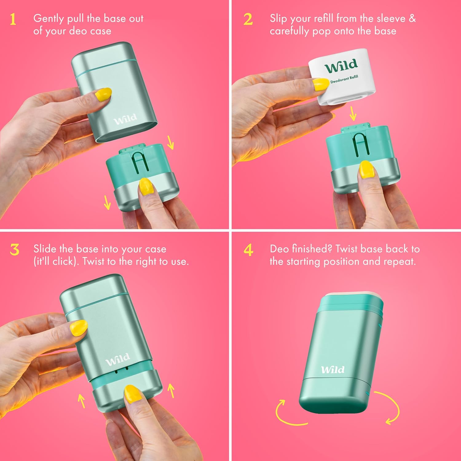 Wild - Refillable Deodorant Starter Kit with Aqua Case and Pink Grapefruit & Lime Scented Refill 1.4oz - Aluminum Free - Long Lasting Protection - Vegan