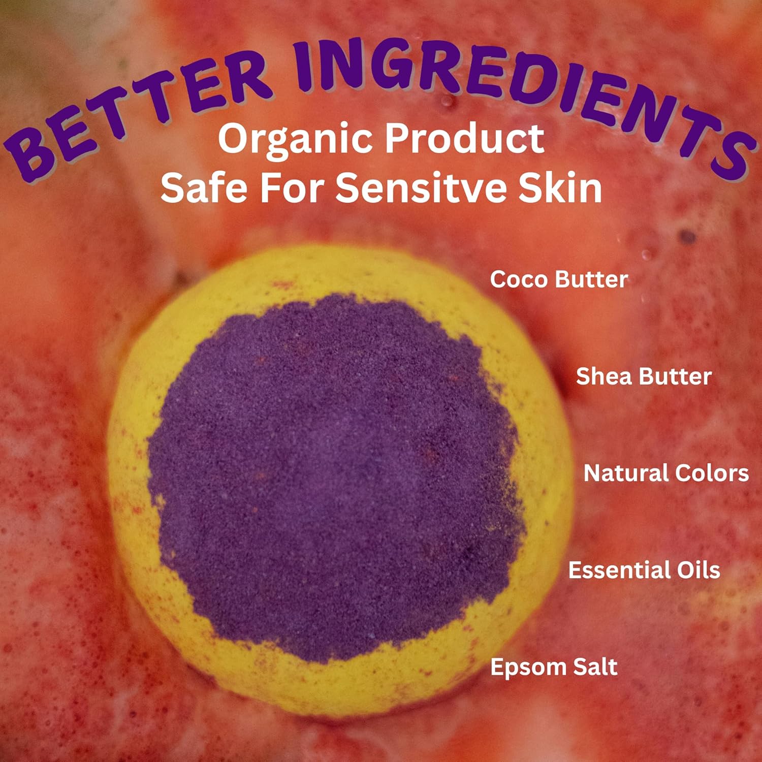 - Fun Bath Experience: Bath bomb with toy inside for an exciting bathing adventure. Have an epic superhero bath bomb adventure with 1pc extra large superhero boy bath bombs with toy inside. These organic kids bath bomb for boys & girls are made from natural ingredients. Ideal sensitive skin bath bomb for kids.