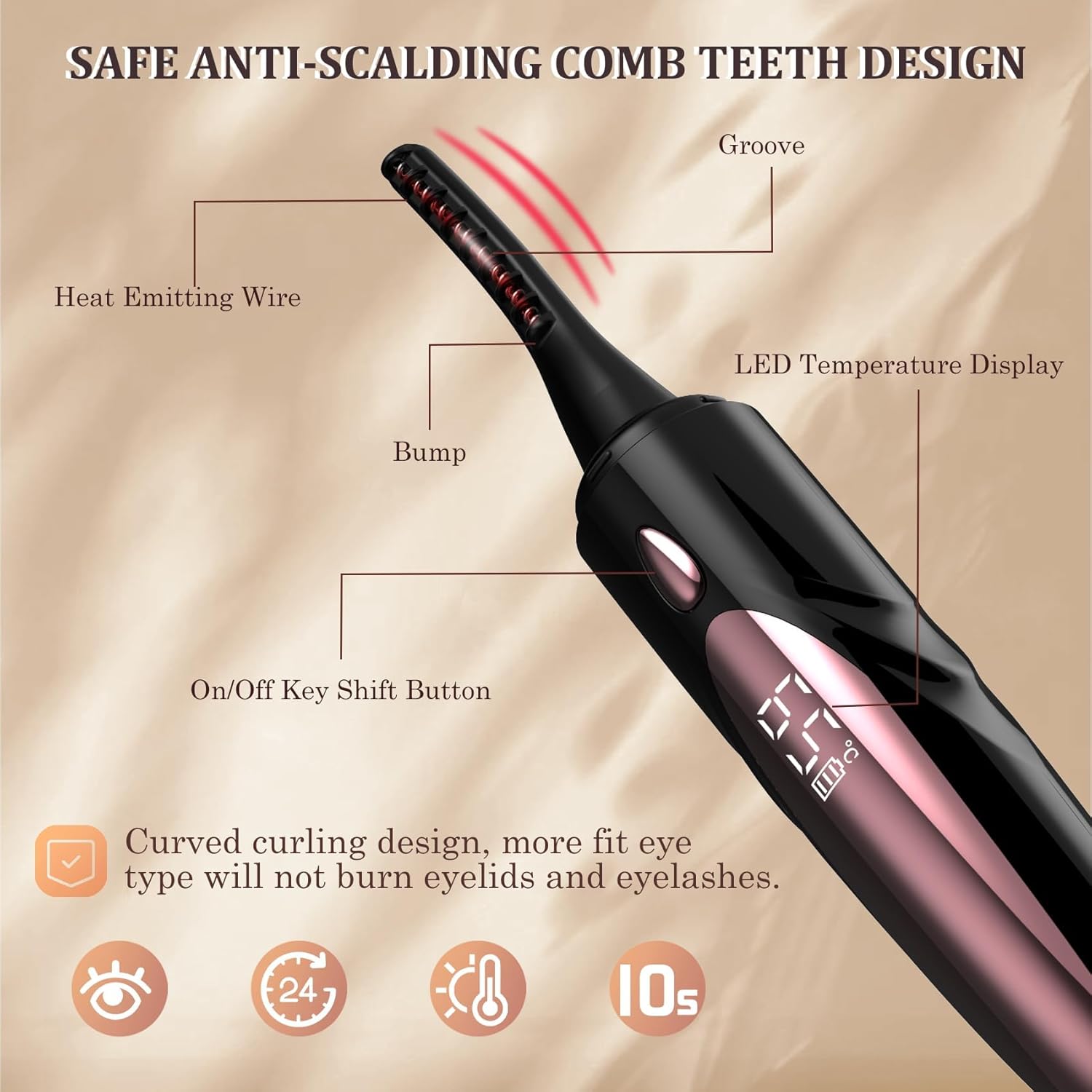 - 【Quick Natural Curling】The eyelash curlers can fast heat up within 10s,without a long wait, and the curved curler head can quickly creates the perfect natural curling eye makeup. Use after heating for 30s to achieve better results. with mascara,can quickly and easily and separate eyelashes, get super 24 hours long lasting natural curl eyelashes, let your eyes deeper and more natural.