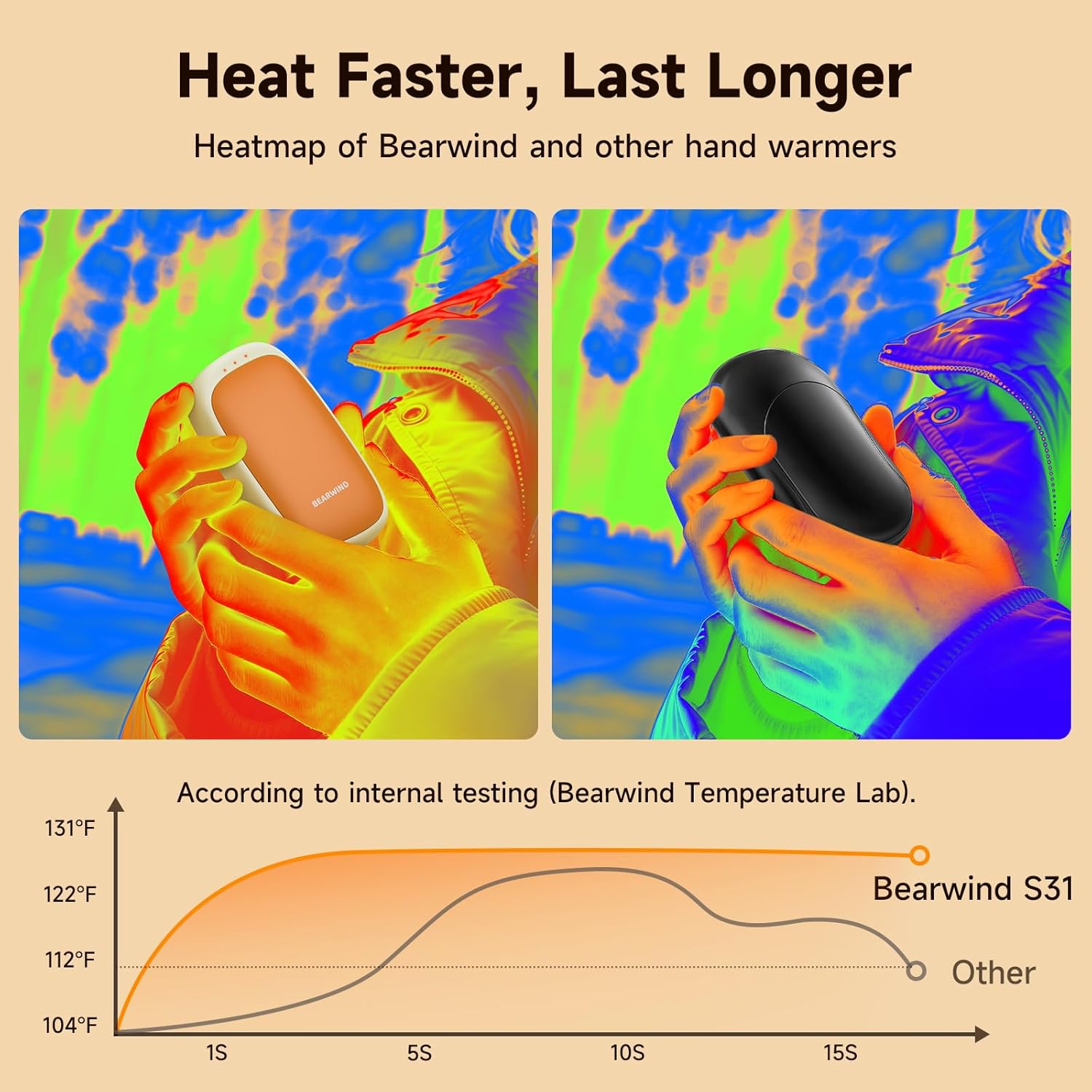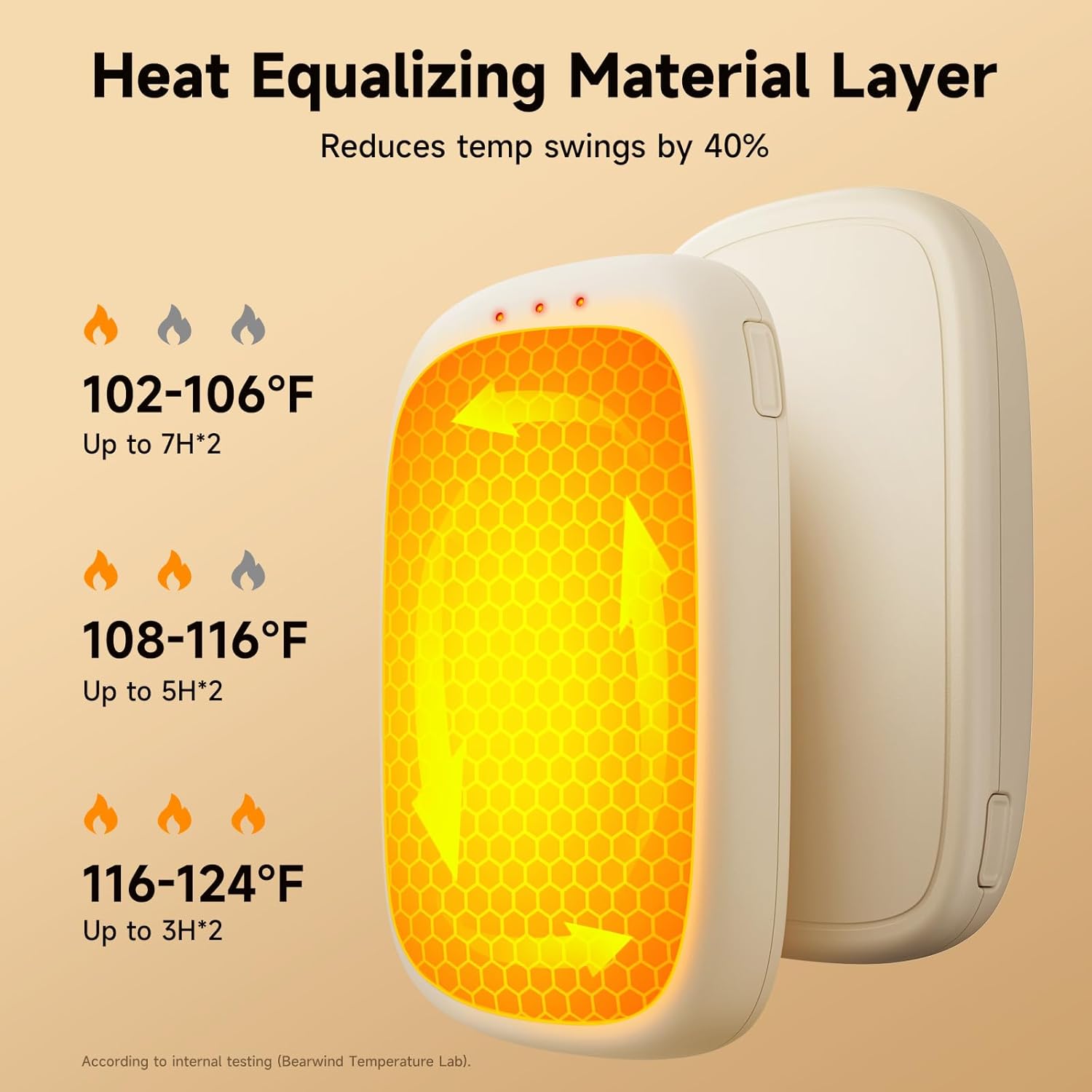- 3 Heat Levels, All-Day Ready: Set to 104°F, 111°F, or 120°F. Battery lasts about 3-8 hours per charge (varies by level and ambient temperature). Ideal for nighttime warmth, outdoor work, winter walking, and hunting; helpful for cold-sensitive hands (e.g., Raynaud’s).