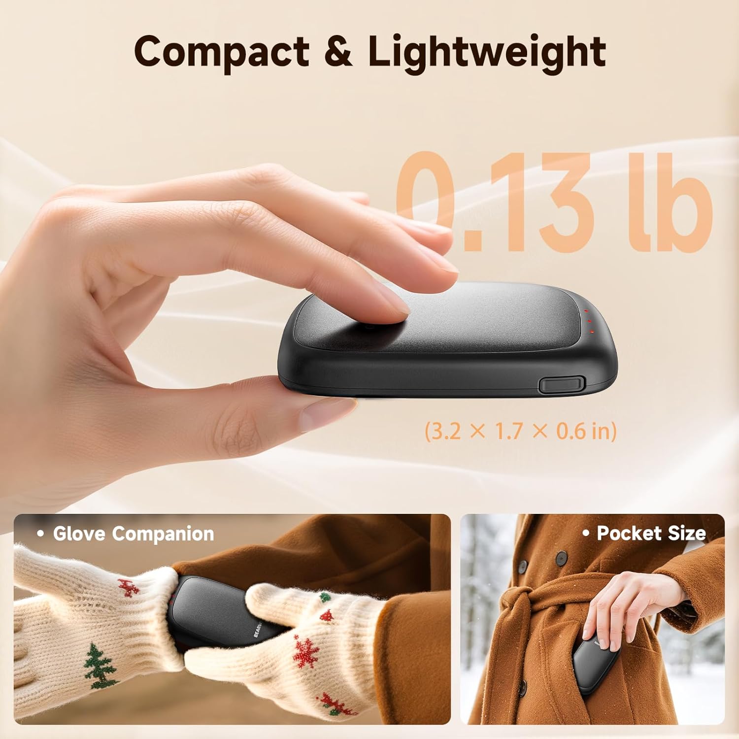 - 3 Heat Levels, All-Day Ready: Set to 104°F, 111°F, or 120°F. Battery lasts about 3-8 hours per charge (varies by level and ambient temperature). Ideal for nighttime warmth, outdoor work, winter walking, and hunting; helpful for cold-sensitive hands (e.g., Raynaud’s).