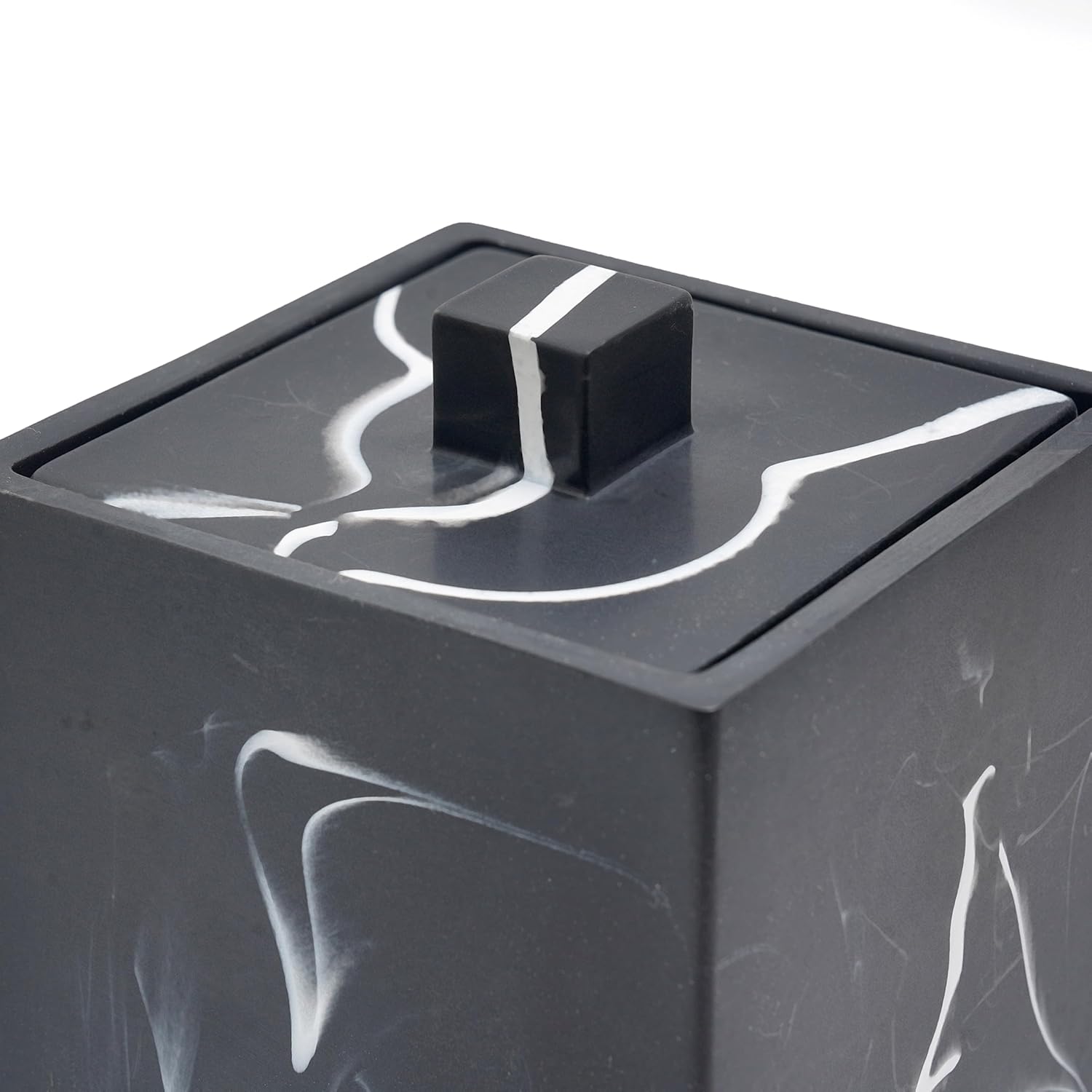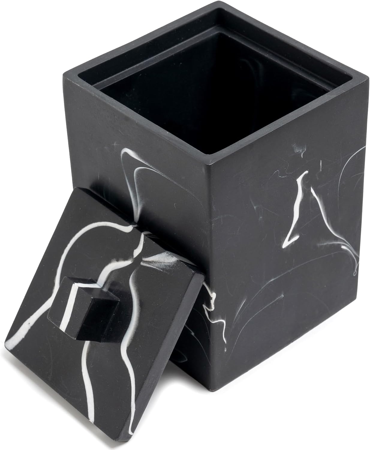 Cotton Swab Canister with Lid, Resin Qtip Holder Bathroom Containers Canister Cotton Ball Organizer, for Jewelry Necklace Ring Earring Storage jar Gift Case (Matte Ink Black)