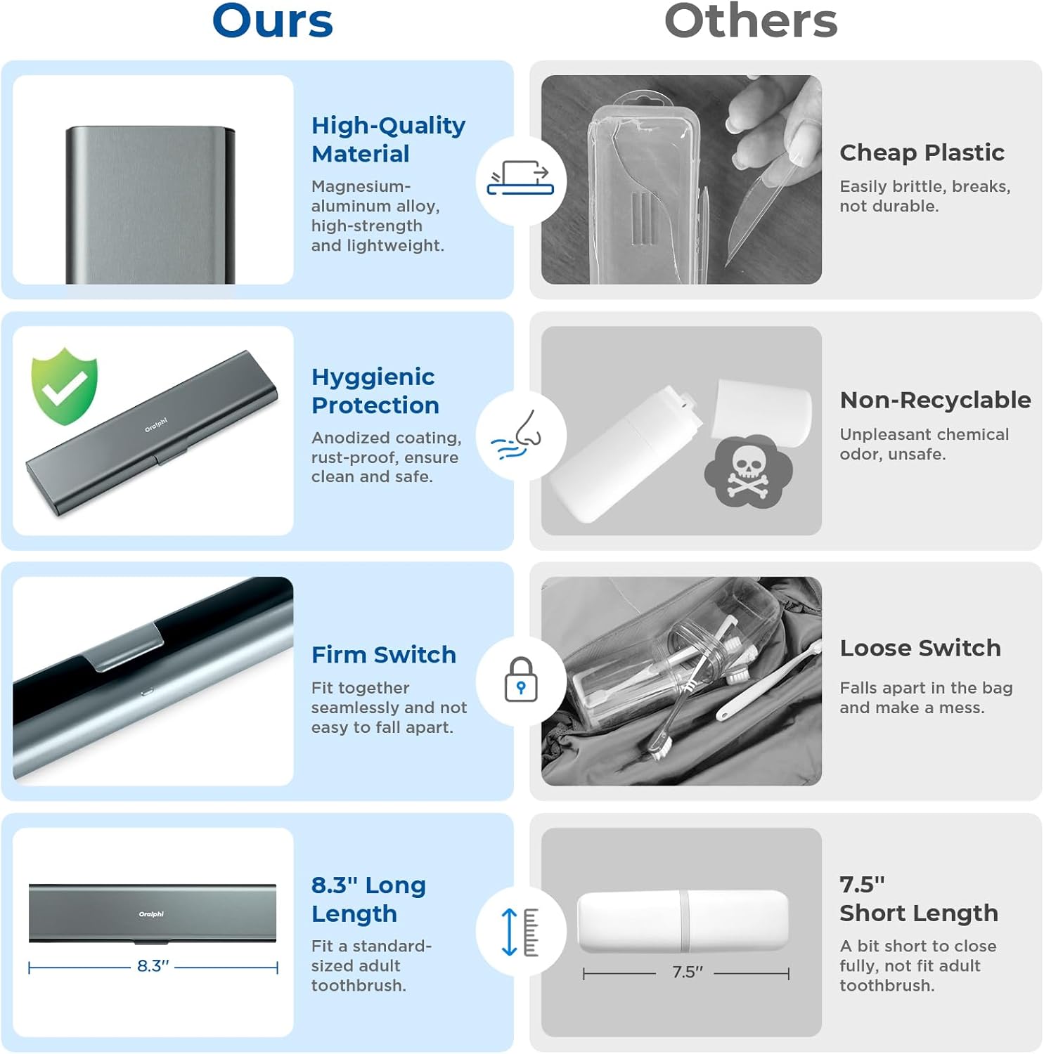 - High-Quality Material: Made of food-grade durable aluminum alloy, our metal travel toothbrush case is safe, non-toxic, odorless, and rust-free. Say goodbye to the common problem of the brittleness of plastic, as our toothbrush container stands the test of time with its robust build. Ensures your toothbrush stays clean and safe