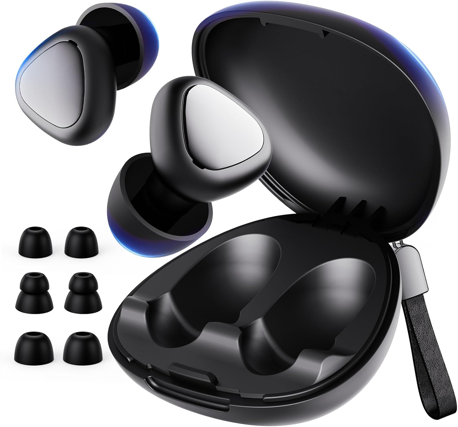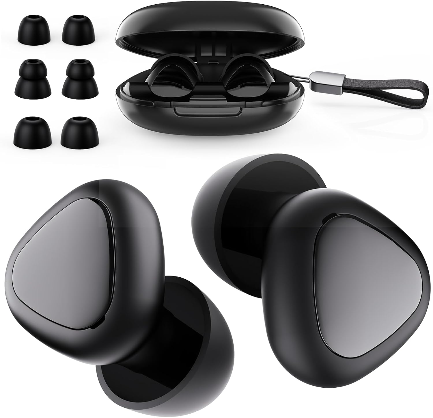 Ear Plugs for Sleeping Noise Cancelling, 45dB Reusable Silicone Earplugs with 6 Eartips and Carry Case, Ear Plugs for Concert & Hearing Protection, Sleep, Travel, Focus & Noise Reduction, Black