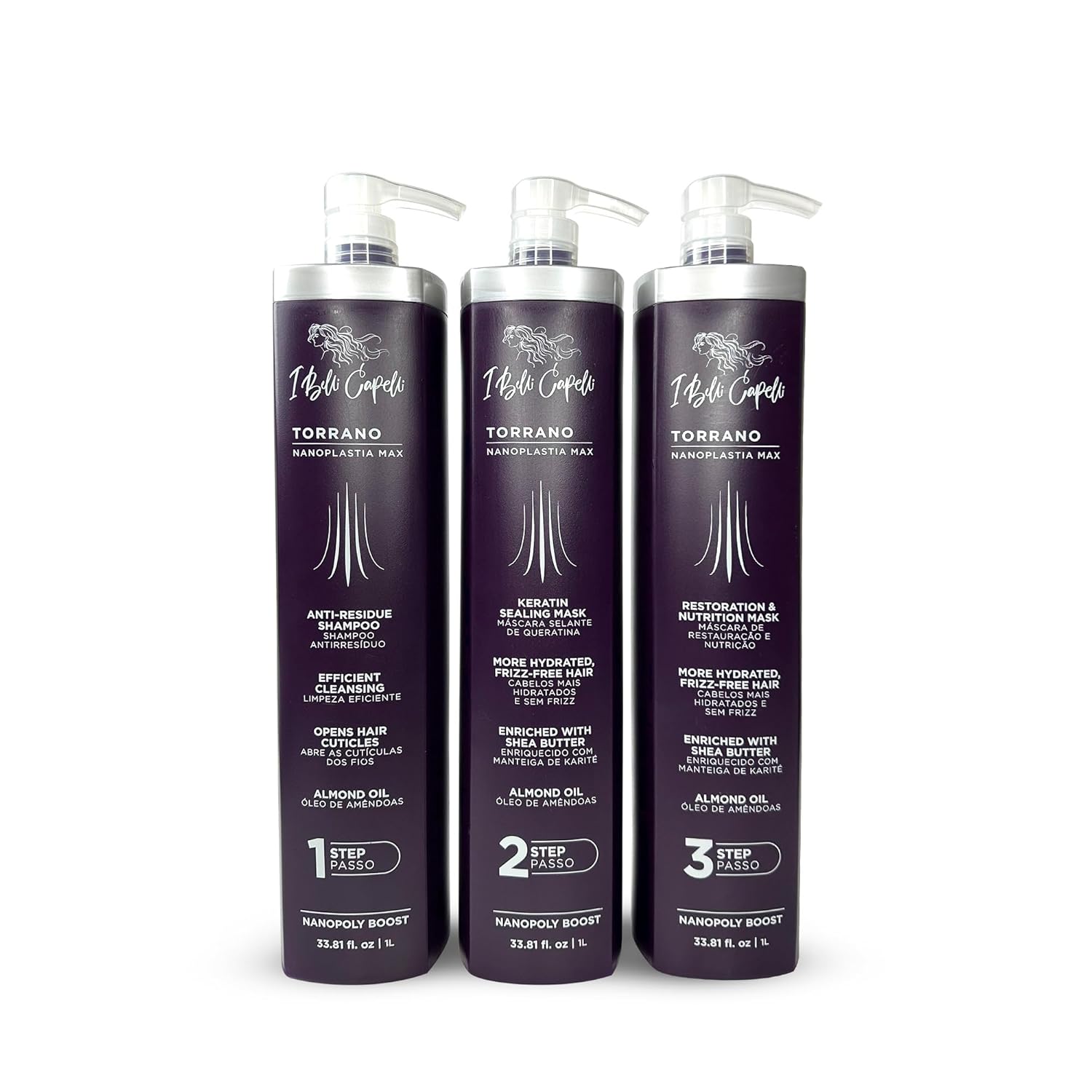Torrano Nanoplastia Max Permanent Keratin Hair Treatment Kit– Brazilian Straightening for Smooth, Shiny & Frizz-Free Hair – All Hair Types –Alisado Brasileño Keratina Permanente (3x1L)