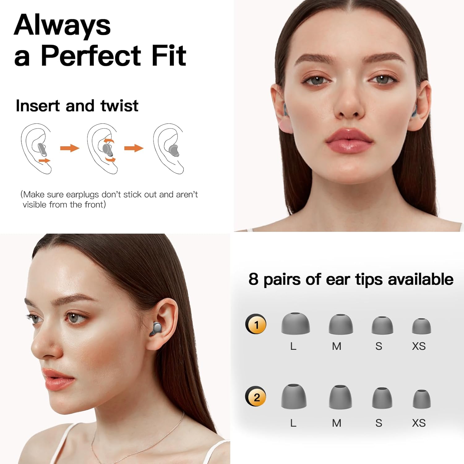 - All-day Comfortable: Ear plugs noise cancelling are made of soft silicone material, undergoing numerous ergonomic designs and tests to ensure a perfect fit for various ear shapes. Weighing a mere 0.1oz per earplug, earplugs provide exceptional comfort even during long hours of wearing, without causing any discomfort or sense of pressure. Additionally, concert ear plugs come with 8 pairs of eartips ranging from sizes XS to L, every user can find their ideal fit for unmatched wearing experience.